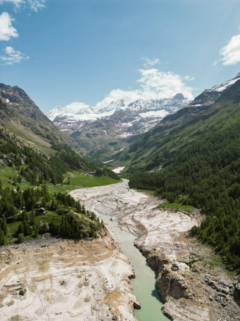 Arrivés au refuge de Prarayer, le panorama est d’autant plus grandiose. On peut observer l’ensemble du lac mais aussi d’imposantes montagnes. D’ailleurs, j’ai été surprise d’apprendre que derrière les montagnes que l’on aperçoit depuis le refuge se cache le Cervin, rien que ça! Le paysage est digne d’une carte postale, j’en ai profité pour faire voler mon drone afin de prendre quelques clichés uniques.