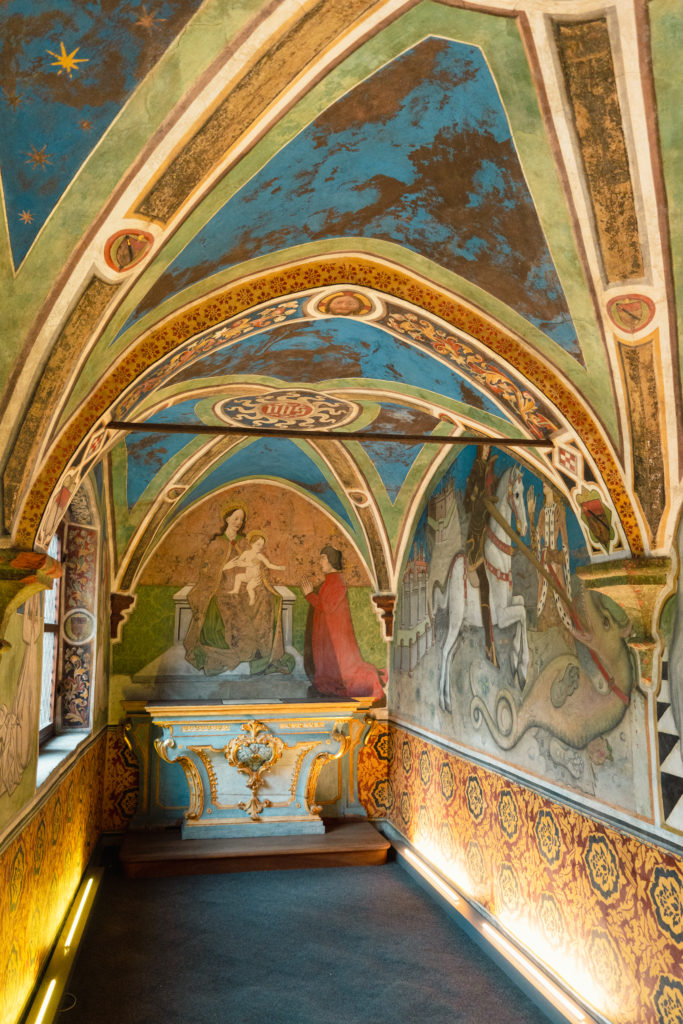 Nous avons commencé notre visite par l’Arc d’Auguste avant de pénétrer dans la vieille ville. Les monuments que j’ai préférés sont le cryptoportique du forum romain, sous la ville. C’est une structure à deux nefs, articulée sur trois côtés et longue de 73 mètres, ainsi que le complexe religieux de Saint Ours. J’ai adoré sa collégiale et son cloître, mais surtout la chapelle du prieuré de Saint Ours et ses fresques de la fin du XVe siècle qui sont splendides.