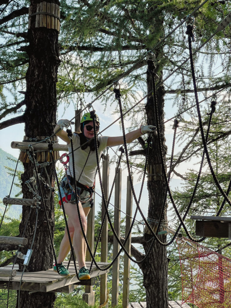 En plus du restaurant et des chambres, Alpe Rebelle propose aussi un parc d’aventure d’accrobranche. Ca faisait des années que je ne m’étais pas adonnée à cette activité, j’ai choisi un parcours d’environ une heure pour me remettre en jambes. C’était moins facile que dans mes souvenirs mais je m’en suis sortie grâce aux conseils des moniteurs.