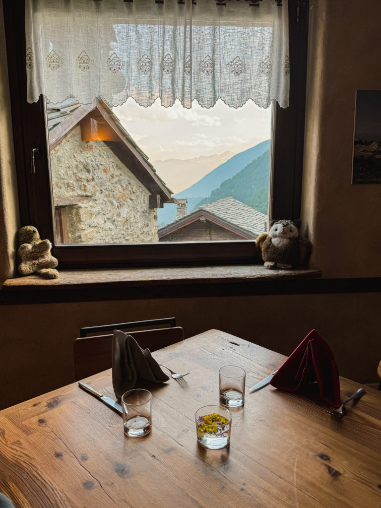 Depuis Valpelline, nous avons pris la route pour Bionaz, à environ 30 minutes de là, où nous avons posé nos bagages au restaurant et chambres d’hôte Alpe Rebelle. Il s’agit d’un établissement familial, tenu par Daniele et sa famille, qui a à coeur de préserver et respecter la montagne.