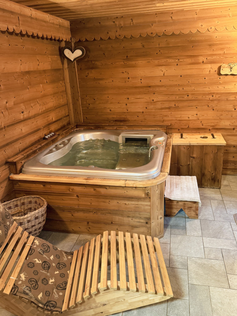 Après une première partie de journée sous le signe de l’effort, place à la détente. Nous nous sommes déplacés vers une autre partie de la Vallée d’Aoste, à environ une heure de route plus au sud, pour rejoindre le village d’Aymavilles. On s’est installés à l’hôtel Rendez-Vous où on a pu profiter de son petit spa et de sa vue splendide sur la vallée.
