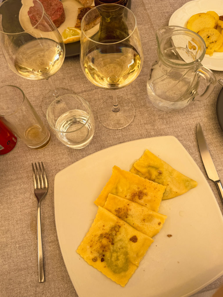 Nous avons terminé notre séjour en Vallée d’Aoste dans un restaurant familial typique qui perpétue la tradition depuis 1957! Bienvenue à l’Osteria Da Nando, en vieille ville d’Aoste. On s’est installés sur une petite terrasse devant leur devanture pleine de charme. Pour débuter, mon choix s’est porté sur une salade de printemps avec des asperges et oeufs de caille. J’ai ensuite dégusté des raviolis à la Fontina et au chou qui étaient absolument divins. Une belle adresse à enregistrer.