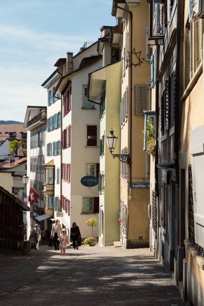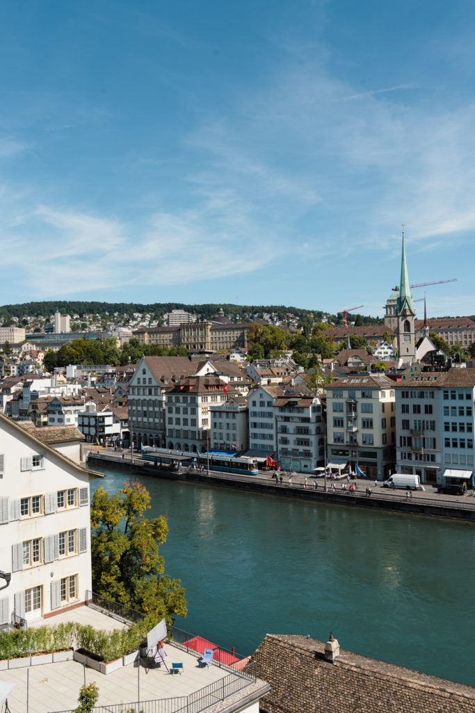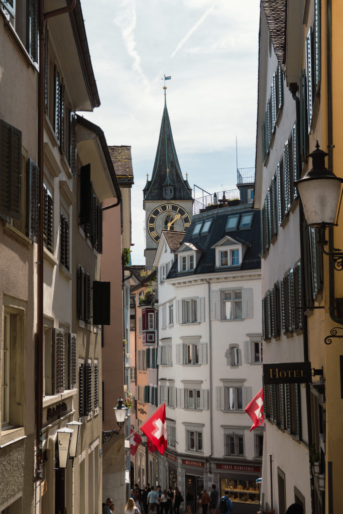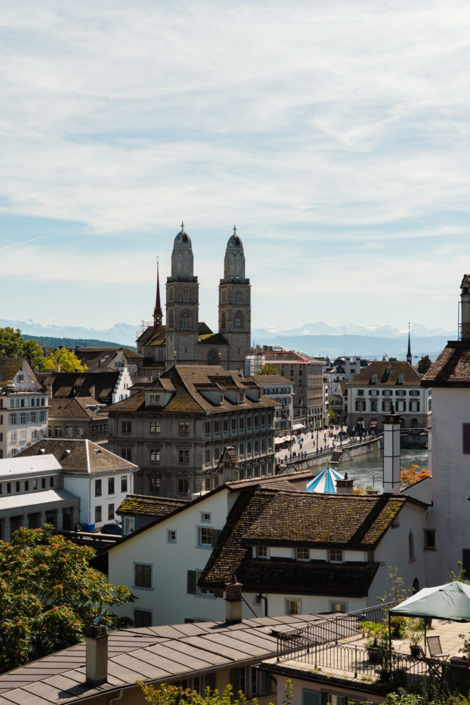Ensuite, j’ai remonté la Bahnhofstrasse (avenue de la gare), réputée pour ses nombreuses boutiques, notamment de luxe. A mon arrivée dans la vieille ville, j’ai rejoint le point de vue du Lindenhof qui offre un panorama à couper le souffle sur Zurich. On y voit la Limmat (la rivière qui traverse la ville), l’EPFZ (école polytechnique de Zurich), l’université, l’hôtel de ville et la Grössmunster qui est l’église emblématique de Zurich, avec ses deux tours.