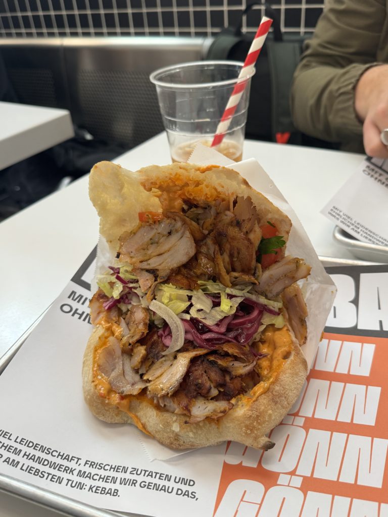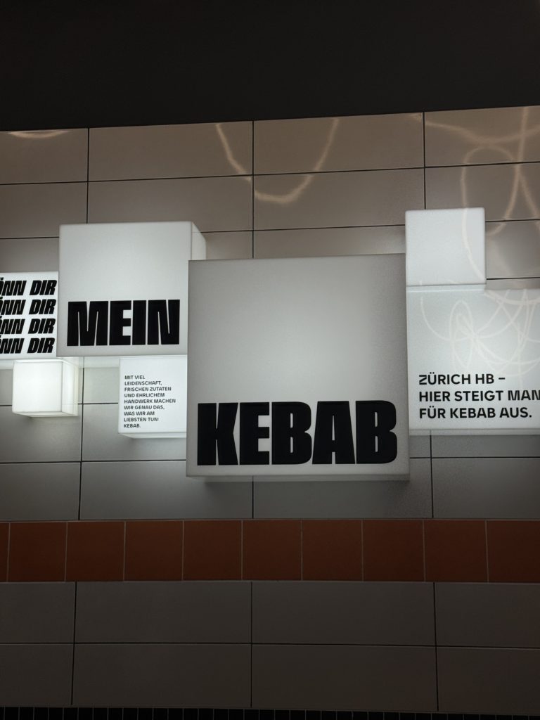 J’ai souvent vu passer le kebab Mit & Ohne (avec et sans) sur les réseaux sociaux et j’avais envie de savoir à quoi était dû son succès. Je me suis donc rendue à leur enseigne située à la gare de Zurich (ils en possèdent une autre à Zurich à la Badenerstrasse 248) pour goûter. Comptez environ CHF 21,50.- pour un kebab au poulet. Le pain est fait sur place à la minute et le kebab est bien fourni. Ca vaut le détour!