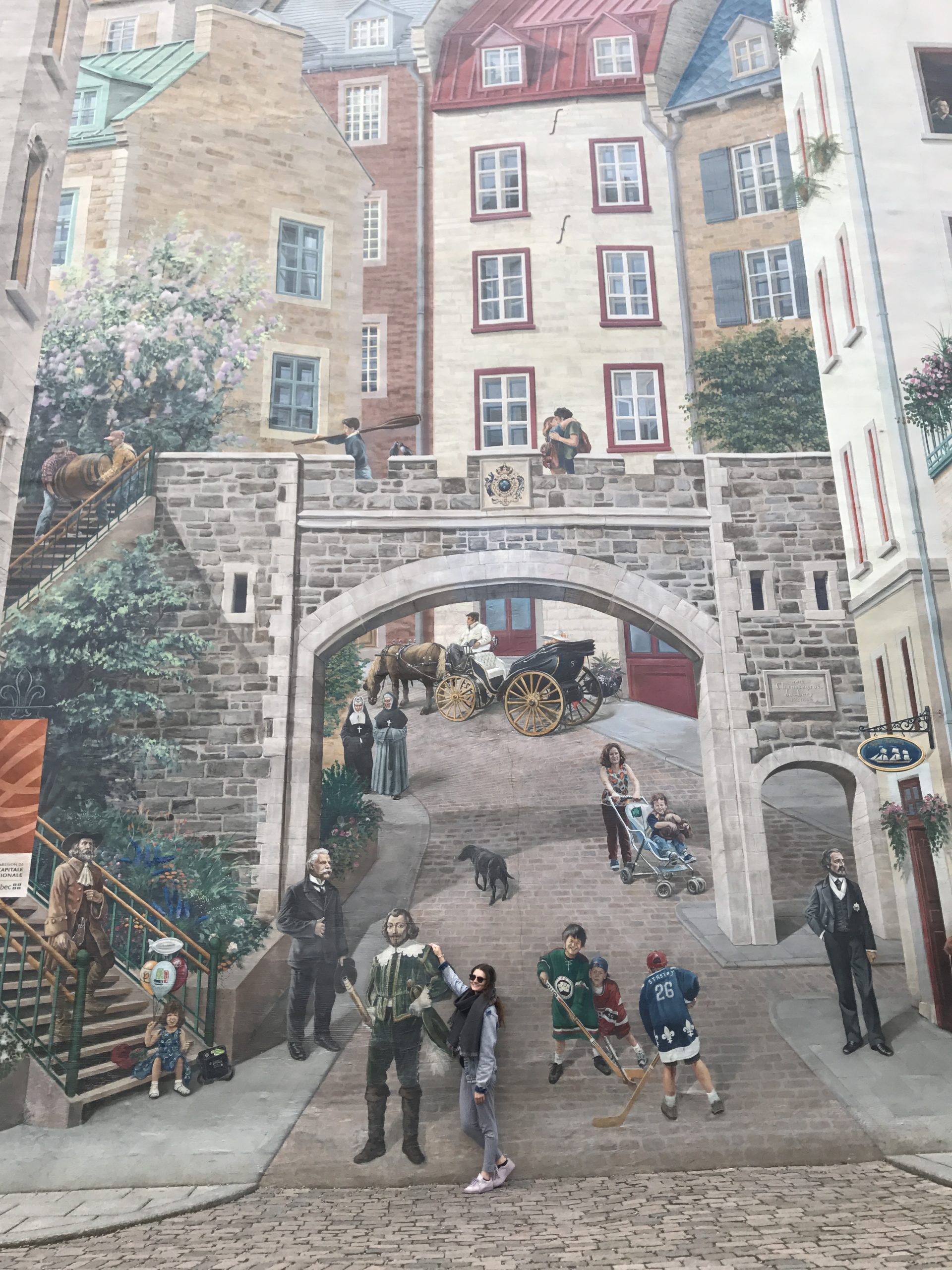 A 09h30, nous avons rencontré la guide qui allait nous faire découvrir Québec City durant toute la matinée. Grâce à elle, nous avons beaucoup appris quant à l’histoire de la ville de Québec et du Québec plus généralement. Le Vieux Québec est magnifique et regorge de petits restaurants et échoppes. La Fresque des Québecois est un must-see, nous avons eu la chance d’avoir une explication sur chaque personnage apparaissant sur celle-ci.