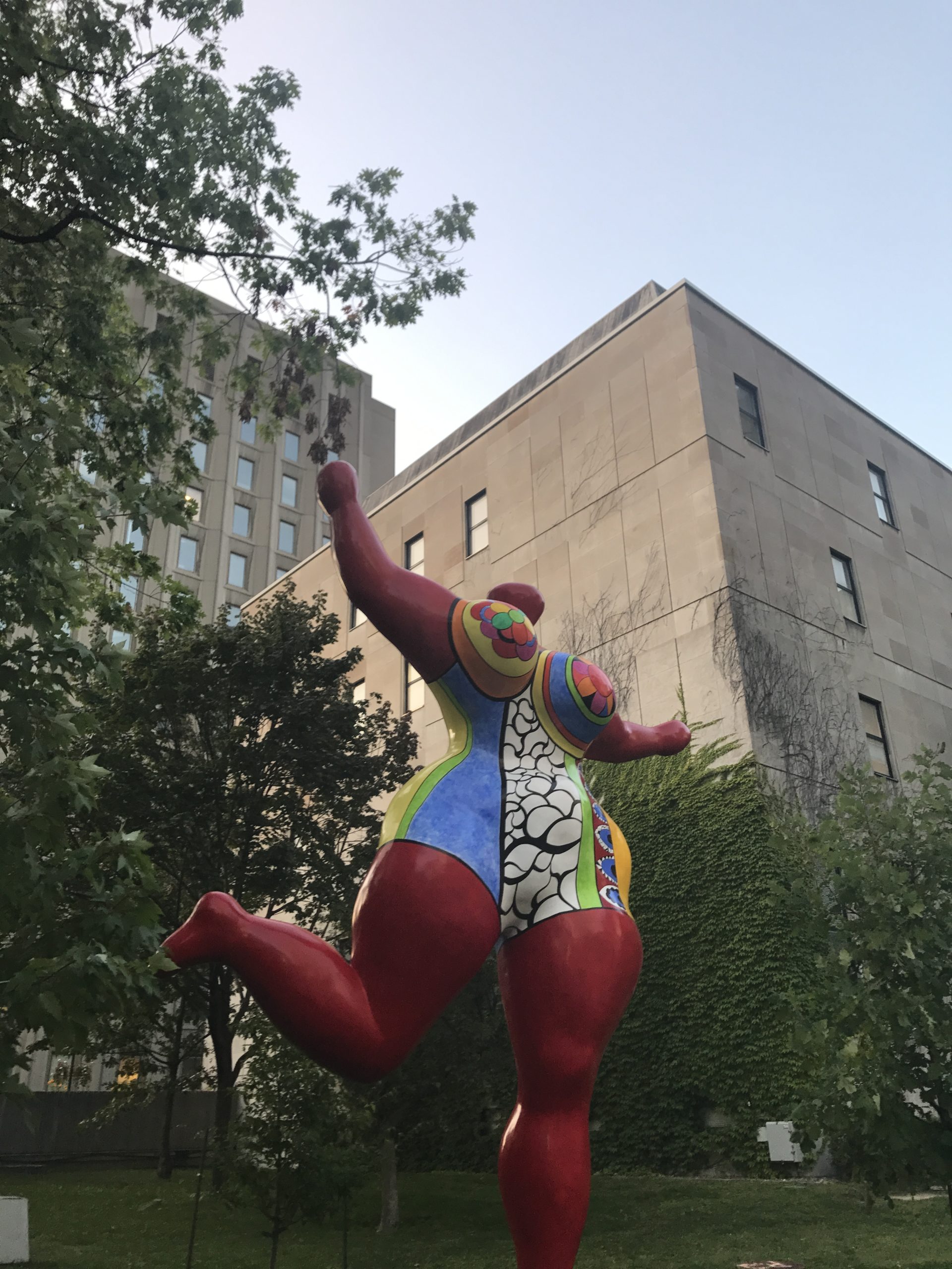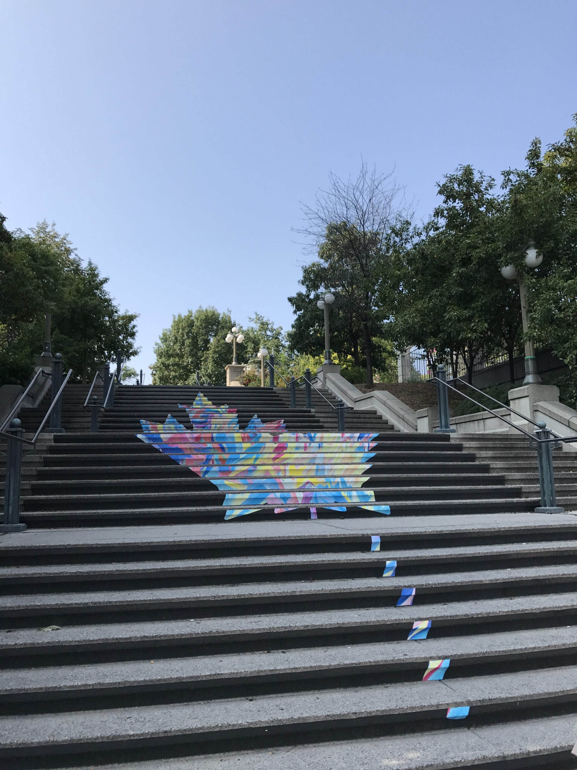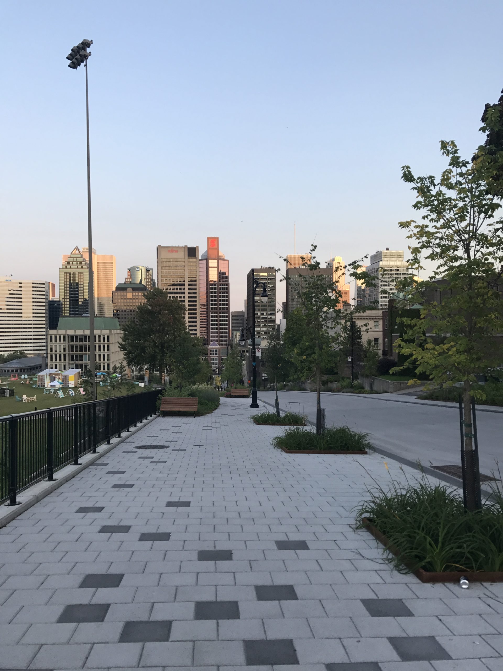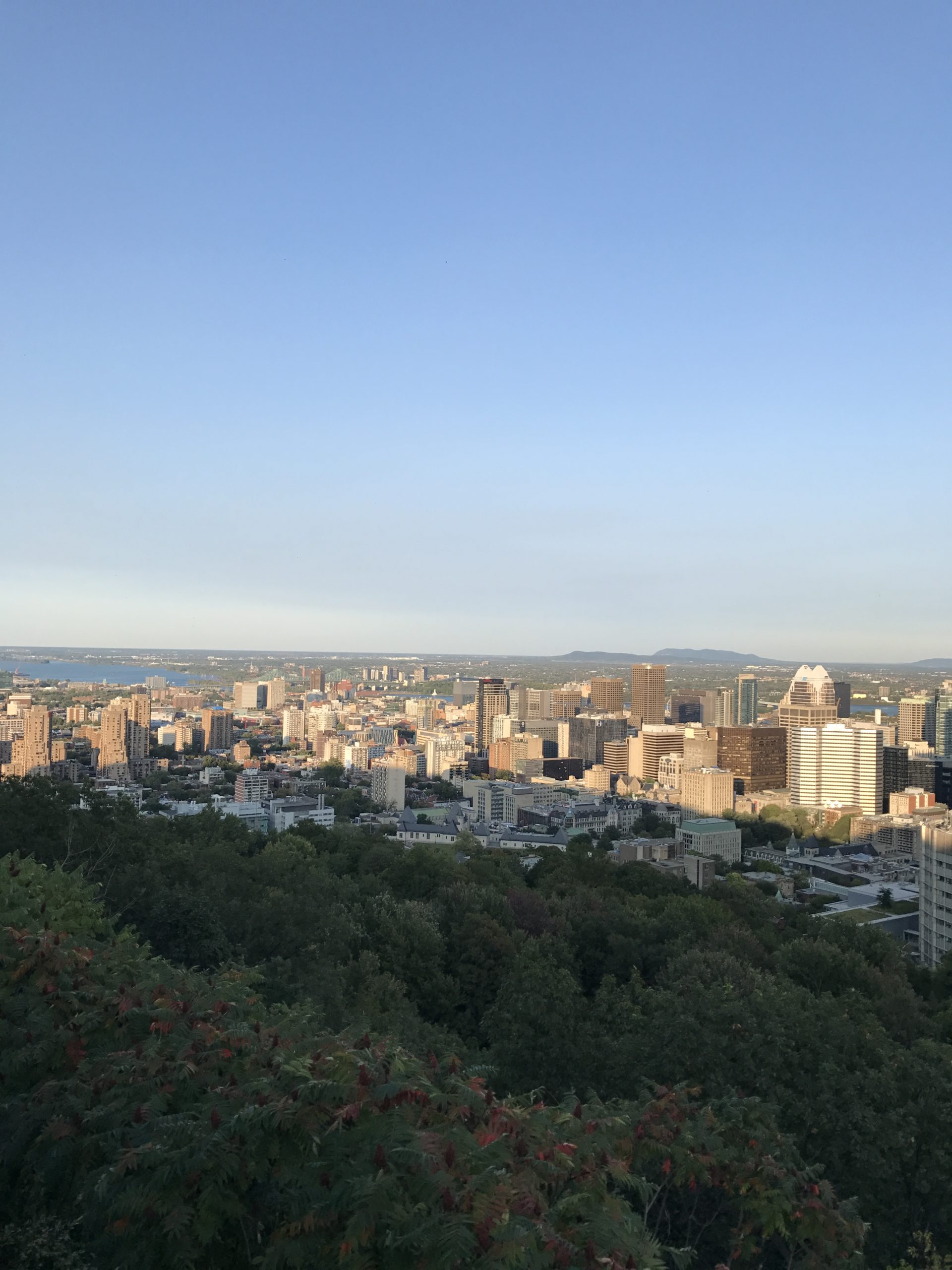 Vu que nous avions la fin d’après-midi et la soirée libre, nous avons décidé de retenter notre chance pour nous rendre à l’Observatoire du Mont-Royal, nous avons donc appelé un Uber pour nous y emmener. Ce dernier n’a tout de même pas pu nous y conduire, mais nous a laissé à l’entrée du cimetière du Mont-Royal d’où nous avons dû marcher une vingtaine de minutes jusqu’à l’Observatoire. Pour vous faire une idée, pour une course Uber de 20 minutes et de 6 kilomètres, nous avons payé CAD 18,64$. Je ne regrette absolument pas de m’être rendue à l’Observatoire, c’est un lieu magnifique avec une vue incroyable sur toute la ville de Montréal. De plus, nous y sommes allés à l’heure du coucher du soleil ce qui a amené des couleurs magnifiques.