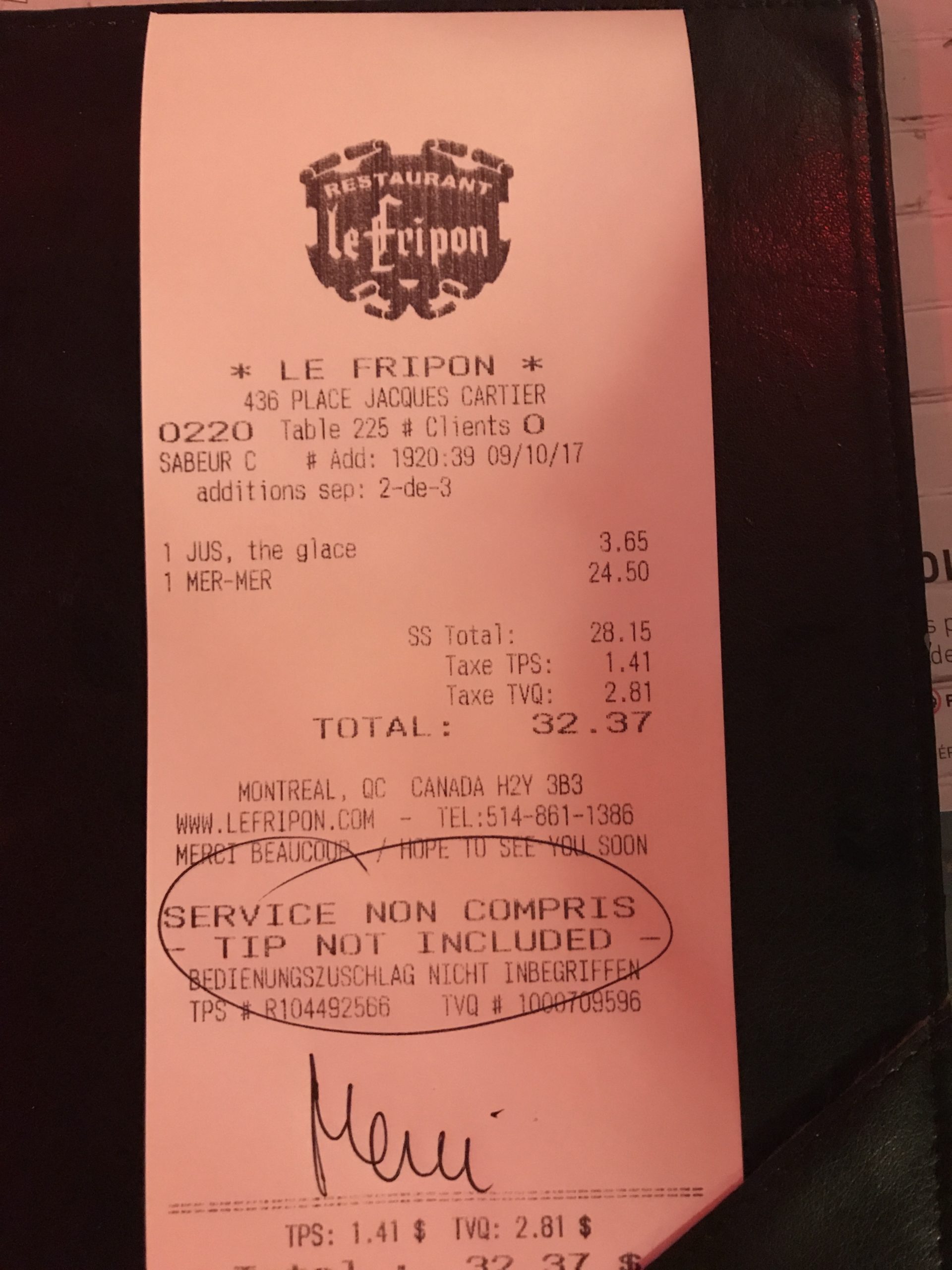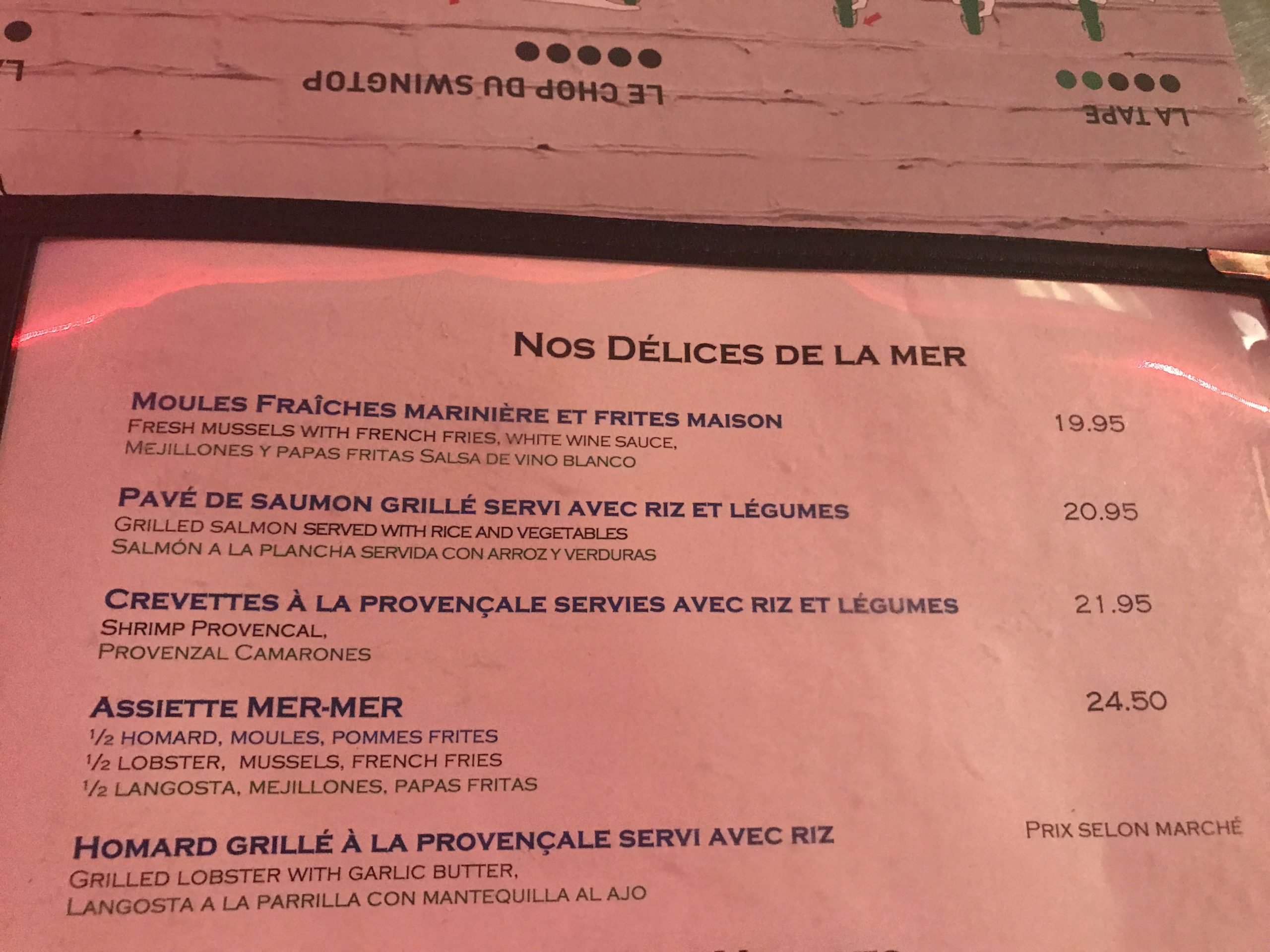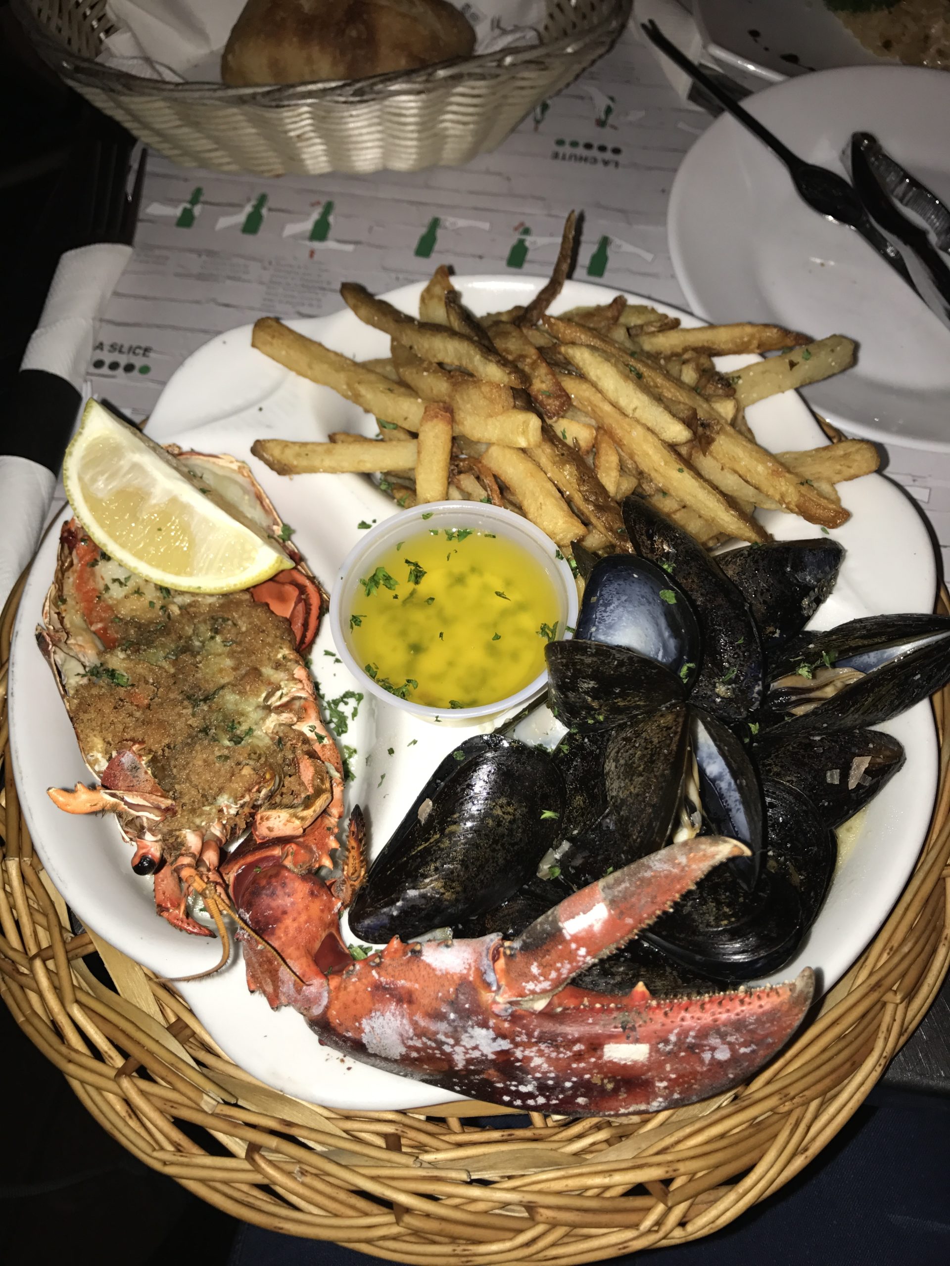 Nous sommes finalement arrivés à la place Jacques-Cartier où nous avons mangé dans un restaurant appelé « Le Fripon », où j’ai dégusté une assiette « mer-mer » composée de moules, d’un demi homard et de frites au prix de CAD 24,50$. Le serveur m’a assuré que le homard avait été pêché dans le fleuve Saint-Laurent. Voici le lien du site du restaurant: http://www.restaurantlefripon.com.