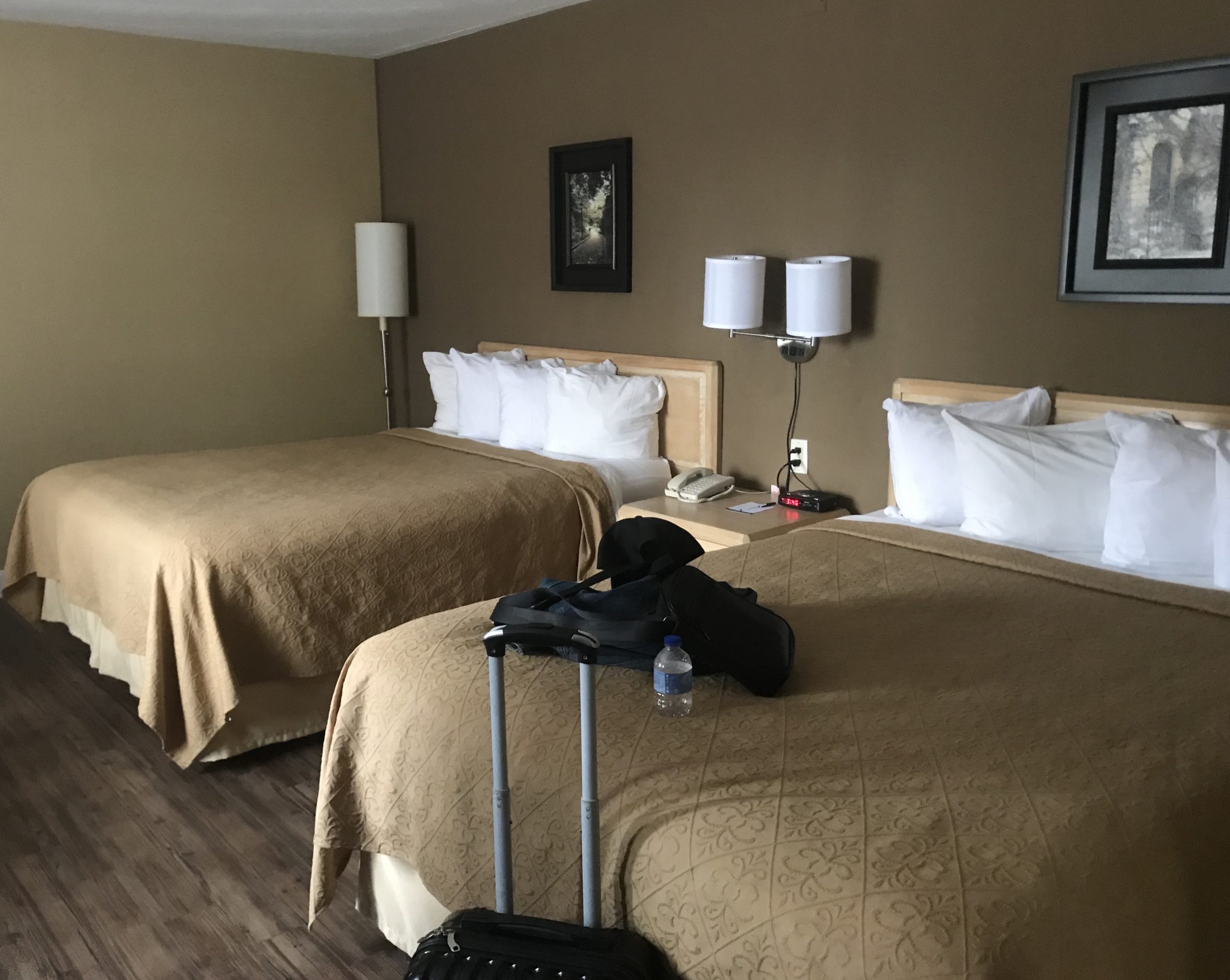 L’hôtel dans lequel nous avons séjourné était simple, confortable, proche des chutes (moins de 5 minutes à pied) et à côté du casino. Le petit-déjeuner est gratuit, ainsi que le wi-fi et le parking. Nous avons également pu profiter de la piscine étant donné du mauvais temps. Pour une chambre standard à deux lits doubles, pour une nuit, cela nous a coûté CAD 171,33 $. Le nom de l’hôtel est « Quality Hotel Fallsview Cascade » et voici le lien du site de l’hôtel: https://www.qualityhotelfallsview.com.