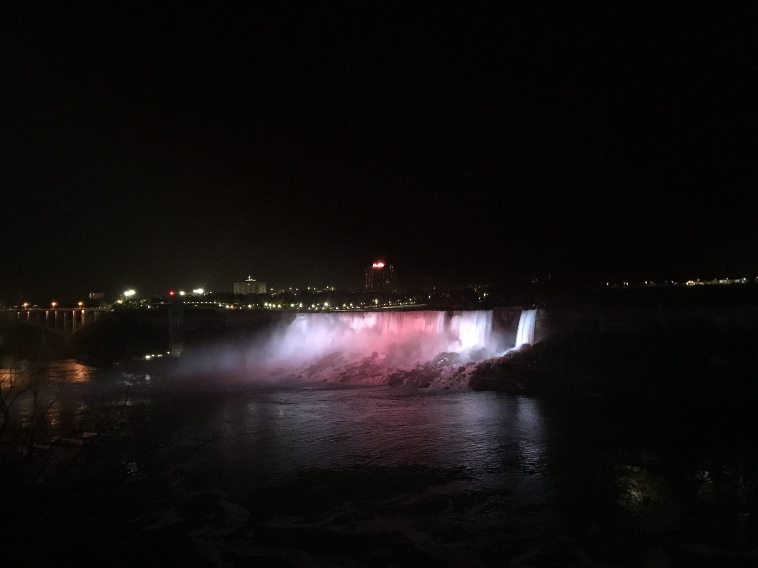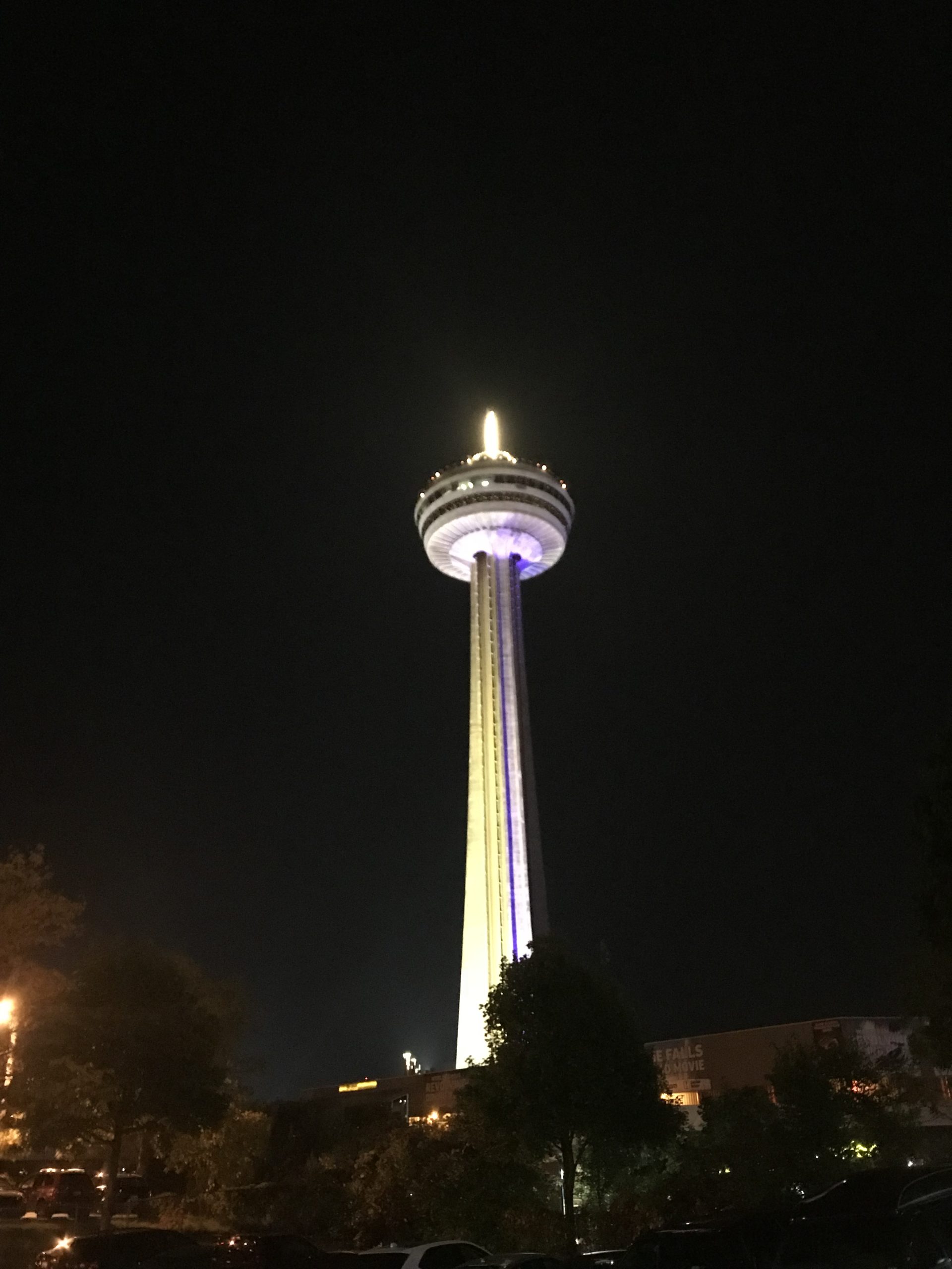 Vers 20h, nous sommes sortis admirer les chutes de nuit cette fois, ainsi que la Skylon Tower.